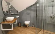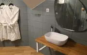 Санузел: душ, раковина, зеркало, фен, средства гигиены (мыло, гель для душа, шампунь), халаты, тапочки, унитаз.