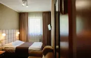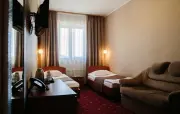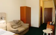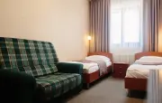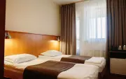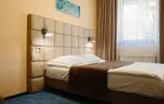 – Стандарт твин (2 номера). 1+1 основных места / 0 дополнительных мест. Однокомнатный номер с балконом: две односпальные кровати, прихожая, шкаф для одежды, тумбочка, столик, зеркало, холодильник, чайник, посуда (для чая), сейф, телефон, телевизор. Санузел: душ, раковина, зеркало, фен, средства гигиены (мыло, гель для душа, шампунь, тапочки), унитаз. Площадь номера: 16.7 кв.м.– Стандарт твин (2 номера). 1+1 основных места / 1 дополнительное место (предоставляется на диване). Однокомнатный номер: две односпальные кровати, диван, прихожая, шкаф для одежды, тумбочка, столик, зеркало, холодильник, чайник, посуда (для чая), сейф, телефон, телевизор. Санузел: душ, раковина, зеркало, фен, средства гигиены (мыло, гель для душа, шампунь, тапочки), унитаз. Площадь номера: 20 кв.м.