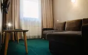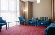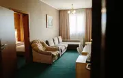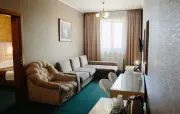– Люкс (1 номер). 2 основных места / 2 дополнительных места (предоставляются на диване). Двухкомнатный номер с балконом. Гостиная: угловой диван, вешалки для верхней одежды, миникомод, журнальный столик, зеркало, холодильник, чайник, набор посуды (для чая), сейф, телефон, телевизор. Спальня: двуспальная кровать, шкаф для одежды, тумбочка. Санузел: душ, раковина, зеркало, фен, средства гигиены (мыло, гель для душа, шампунь), халаты, тапочки, унитаз. Площадь номера: 35.8 кв.м