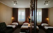 – Семейный (1 номер). 4 основных места / 1 дополнительное место (предоставляется на кресло-кровати). Семейный номер представляет собой: две комнаты с общей входной зоной и с общим санузлом. Спальня: двуспальная кровать, журнальный столик, набор посуды (стаканы), сейф, телефон, телевизор. Спальня: две односпальные кровати, шкаф для одежды, тумба, телевизор. Санузел: душ, раковина, зеркало, фен, средства гигиены (мыло, гель для душа, шампунь), унитаз. Площадь номера: 30.6 кв.м.
