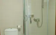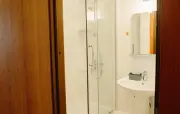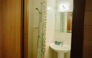 Санузел: душ, раковина, зеркало, фен, средства гигиены (мыло, гель для душа, шампунь, тапочки), унитаз.