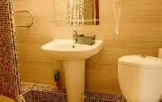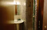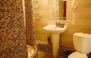 Санузел: душ, раковина, зеркало, фен, средства гигиены (мыло, гель для душа, шампунь), унитаз.