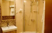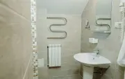– Люкс (1 номер). 2 основных места / 3 дополнительных места (предоставляются на диване и кресло-кровати). Двухкомнатный номер с балконом. Гостиная: угловой диван, кресло-кровать, вешалки для верхней одежды, миникомод, журнальный столик, зеркало, холодильник, чайник, набор посуды (для чая), сейф, телефон, телевизор. Спальня: двуспальная кровать, шкаф для одежды, тумбочка. Санузел: душевая кабина, раковина, зеркало, фен, средства гигиены (мыло, гель для душа, шампунь), халаты, тапочки, унитаз. Площадь номера: 36,3 кв.м.