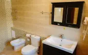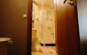 Санузел: душевая кабина, раковина, зеркало, фен, средства гигиены (мыло, гель для душа, шампунь), халаты, тапочки, биде, унитаз.