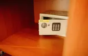 Спальня: двуспальная кровать, журнальный столик, набор посуды (стаканы), сейф, телефон, телевизор.