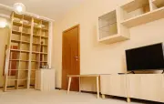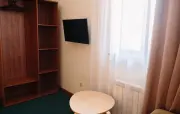 Однокомнатный номер: двуспальная кровать, диван, стеллаж, тумбочка, холодильник, чайник, набор посуды (для чая), сейф, телефон, телевизор.