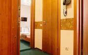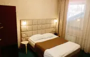 – Люкс (1 номер). 2 основных места / 4 дополнительных места (предоставляются на двух диванах и кресло-кровати). Двухкомнатный номер. Гостиная: два раскладных дивана, кросло-кровать, вешалки для верхней одежды, тумба, журнальный столик, зеркало, холодильник, чайник, набор посуды (для чая), сейф, телефон, телевизор. Спальня: двуспальная кровать, минидиван для отдыха, шкаф, тумбочка. Санузел: душевая кабина, раковина, зеркало, фен, средства гигиены (мыло, гель для душа, шампунь), халаты, тапочки, унитаз. Площадь номера: 50 кв.м.