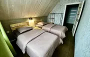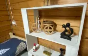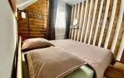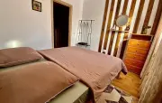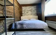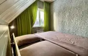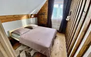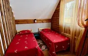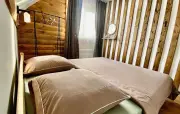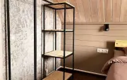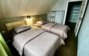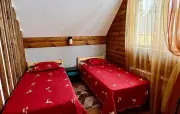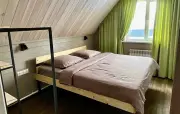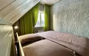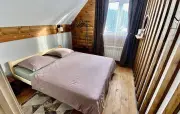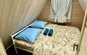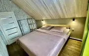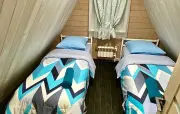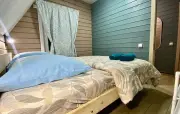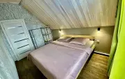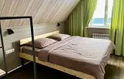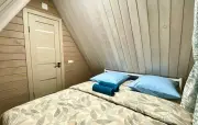 Спальня: двуспальная кровать (180*200), деская кровать (80*120), прикроватные тумбы, стойка для одежды.