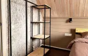 Спальня (№4) : две односпальные кровати, прикроватые тумбы, открытый стеллаж-вешалка, зеркало.