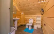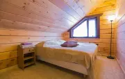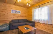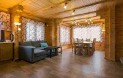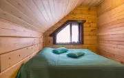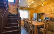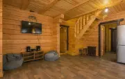 – Коттедж №2. 8 основных мест / 2 дополнительных места (предоставляются на раскладном диване). Двухэтажный коттедж. Первый этаж: прихожая, спальня, большая гостиная совмещенная с кухнной зоной, санузел. Спальня: раскладной диван, тумба, вешалка, телевизор. Гостиная: большой угловой диван, обеденный стол, журнальный столик, стулья, телевизор. Кухонная зона: холодильник, варочная панель, микроволновая печь, чайник, набор посуды для приготовления и сервировки. Санузел: душ, раковина, зеркало, унитаз, фен. Второй этаж: три спальни, санузел. В спальнях: универсальная кровать, может быть двуспальной или двумя односпальными, тумба, вешалка, телевизор. Санузел: раковина, зеркало, унитаз. Площадь коттеджа: 120 кв.м.