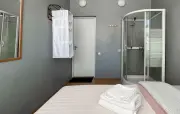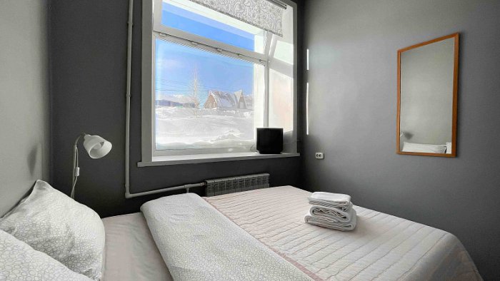 Эконом (2 номера). 2 основных места / 1 дополнительное место (предоставляется на раскладушке). Однокомнатный номер: двуспальная кровать, вешалка, зеркало, телевизор. Санузел на этаже, душевая кабина в номере. Площадь номера: 10-12 кв.м.