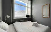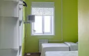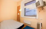 Эконом (1 номер). 1+1 основных места / 1 дополнительное место (предоставляется на раскладушке). Однокомнатный номер: двухъярусная односпальная кровать, вешалка, зеркало, телевизор. Санузел на этаже, душевая кабина в номере. Площадь номера: 10-12 кв.м.
