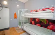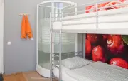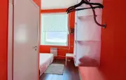 Однокомнатный номер: двухъярусная односпальная кровать, вешалка, зеркало, телевизор.