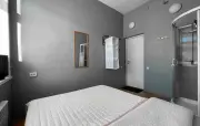 Однокомнатный номер: двухспальная кровать, вешалка, зеркало, телевизор.