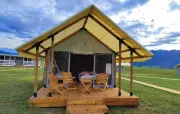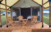 28 м2, утепленный глэмп-тент, простыни с подогревом, столик складной, модуль для одежды (с плечиками), чайник, чайный набор терраса – 12 м2, три складных кресла (Номера могут отличаться друг от друга своей комплектацией)