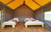 1 2-спальная, 1-спальная 28 м2, утепленный глэмп-тент, простыни с подогревом, столик складной, модуль для одежды (с плечиками), чайник, чайный набор