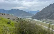Перевал Кату-Ярык откроет панораму долины Чулышмана, дорога крутым серпантином спускается по склонам коньона, в нижней части которого течет стремительная река.