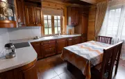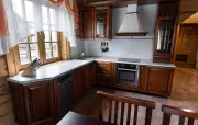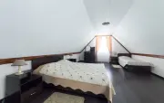 3 | 2-спальная, две 1-спальные | 103 м2 1 этаж: журнальный столик, камин, 2 кресла, диван, телевизор, кухонная зона (кухонный гарнитур, стол, стулья, холодильник, электроплита, чайник, набор посуды) 2 этаж: две спальни: прикроватные тумбочки (в обеих спальнях), в одной спальне шкаф, в другой комод |
