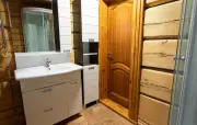 1 этаж: раковина,унитаз 2 этаж: душевая кабина(малогабаритная), раковина, унитаз, фен, халат, тапочки |