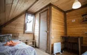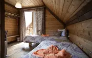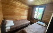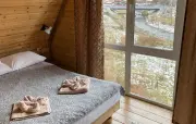две спальни на 2 этаже: в одной - 2-спальная кровать, большое панорамное окно с видом на р. Узнезя, во второй - две 1-спальные кровати, прикроватные тумбочки, панорамное окно с видом на р. Узнезя