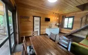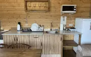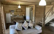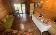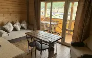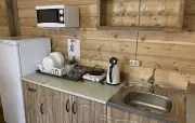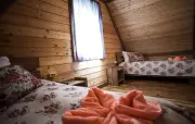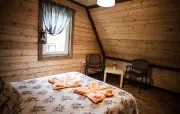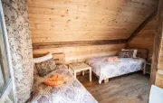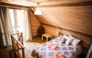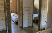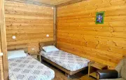 3 | 2-спальная, две 1-спальные | 70 м2, 2-этажный коттедж гостиная на 1 этаже: гардеробная, диван, кресло, журнальный столик, стулья, телевизор, кухонная зона (столешница, шкафчики, мойка, эл. плита, микроволновая печь, холодильник, чайник, набор посуды, обеденный стол) две спальни на 2 этаже: в одной - 2-спальная кровать, панорамное окно с видом на р. Узнезя, во второй - две 1-спальные, прикроватные тумбочки |
