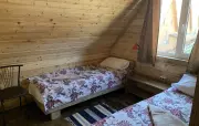 3 | 2-спальная, две 1-спальные | 50 м2, 2-этажный коттедж гостиная на 1 этаже: гардеробная, диван, журнальный столик, стулья, телевизор, холодильник, чайник две спальни на 2 этаже: в одной - 2-спальная кровать, во второй - две 1-спальные, прикроватные тумбочки |