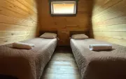 3 | 2-спальная, две 1-спальные | 60 м2, 2-этажный коттедж гостиная на 1 этаже: гардеробная, диван, кресло, журнальный столик, стулья, телевизор, кухонная зона (столешница, шкафчики, мойка, эл. плита, микроволновая печь, холодильник, чайник, набор посуды, обеденный стол) две спальни на 2 этаже: в одной - 2-спальная кровать, во второй - две 1-спальные, прикроватные тумбочки |