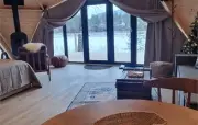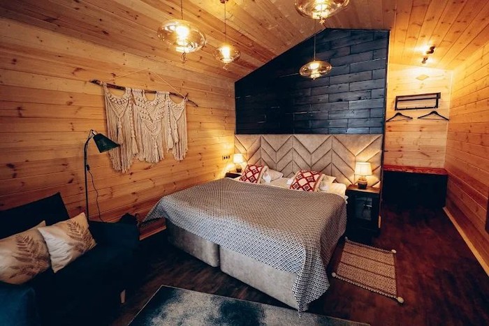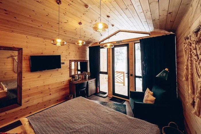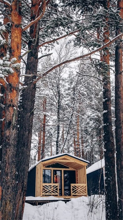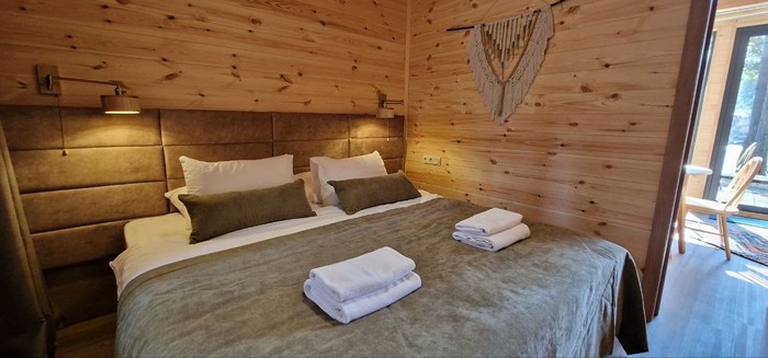 благоустроенные номера в домах (Барнхаус с терр., Барнхаус с балк 1, Барнахус с балк 2, барнахус 2-сп, A-Frame, A-Frame с камином, A-Frame без камина, Premium A-Frame, Шишка-дом с камином, Бунгало с камином), работают круглогодично