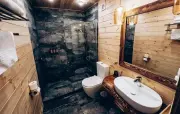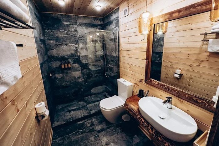 умывальник, туалет, душ, фен, гигиенический набор, натуральная косметика, набор полотенец, теплый пол (номера могут отличаться друг от друга своей комплектацией)