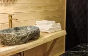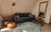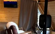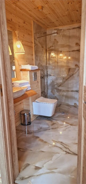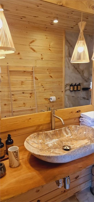 терраса (шезлонги, очаг/камин) умывальник, туалет, душевая кабина, фен, гигиенический набор, натуральная косметика, набор полотенец, теплый пол диван