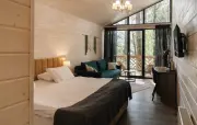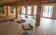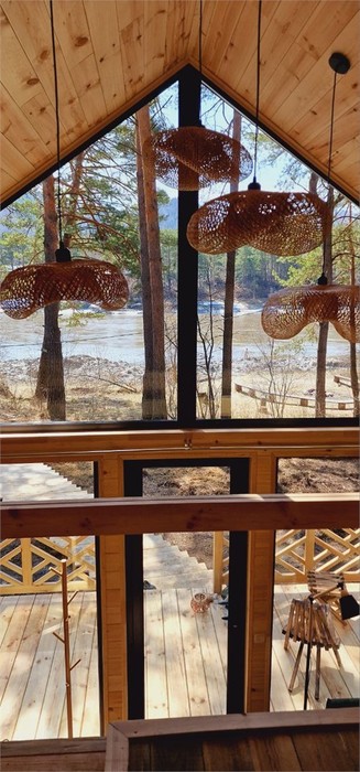 горный отель на берегу реки в окружении леса с услугами пармейстера и массажиста. Есть возможность аренды зала для практик или конференции и большой площадки (150 кв.м). На территории есть баня и возможность проката детской кроватки, стульчика и люльки