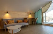 3 | 2-спальная, две 1-спальные | 65 м2, 1 спальня: прикроватные тумбочки с бра, вешалка, 2 спальня: прикроватные тумбочки, кресло, вешалка гостиная: столик, диван, телевизор, кухонная зона с варочная панелью, мини-холодильник, микроволновка, раковина, чайник, кондиционер |