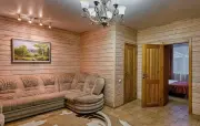 4 | 2-спальная, две 1-спальные | 60 м2 1 этаж: вешалка, диван, столик, пуфик, стол, стулья, телевизор, кухонная зона, мини-холодильник, раковина, чайник 2 этаж: прикроватные тумбочки с бра, комод, кресла |