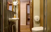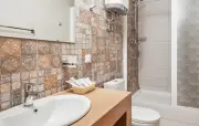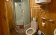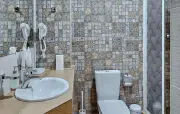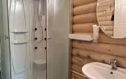 в одном из номеров два санузла на 1 и 2 этаже: туалет, умывальник, душевая кабина, халаты, набор полотенец, фен, гигиенические принадлеж-ности в остальных номерах один санузел: туалет, умывальник, душевая кабина, халаты, набор полотенец, фен |