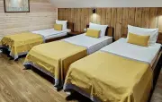 5 | девять 1-спальных | 120 м2 1 этаж: гостиная, вашалки, столик, диван, телевизор, стол, стулья, кухонная зона с варочной панелью, холодильник, микроволновка, раковина, чайник спальная комната: две 1-спальные кровати, прикроватные тумбочки с бра 2 этаж: две спальни с двумя 1-спальными кроватями, одна спальня с тремя 1-спальными кроватями, прикроватные тумбочки с бра |