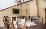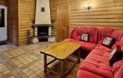 5 | три 2-спальные, две 1-спальные | 120 м2 1 этаж: гостиная, вашалки, столик, диван, камин, телевизор, стол, стулья, кухонная зона с варочной панелью, холодильник, микроволновка, раковина, чайник спальная комната: прикроватные тумбочки с бра 2 этаж: две спальни с 2-спальными кроватями, одна спальня с двумя 1-спальными кроватями, прикроватные тумбочки с бра |