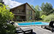 отдельностоящий 2-этажный коттедж с собственной территорией, инфраструктурой, отдельным входом в лесопарк и берег Катуни, большой беседкой с казаном и мангалом, крытым игровым павильоном (бильярд с каменным столом, настольный теннис), большой баней, большим бассейном, детским бассейном, парковкой на 5 авто | 6 осн 5 доп |