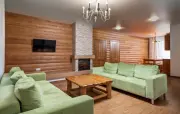 4 | три 2-спальные | 300 м2 1 этаж: гостиная, вешалка, камин, столик, диван, телевизор, стол, стулья, кухонная зона с мини-холодильником, микроволновка, чайник две спальные комнаты: прикроватные тумбочки с бра 2 этаж: спальная комната: прикроватные тумбочки с бра, письменный стол, стул, в двух спальнях диван и телевизор, вешалки |