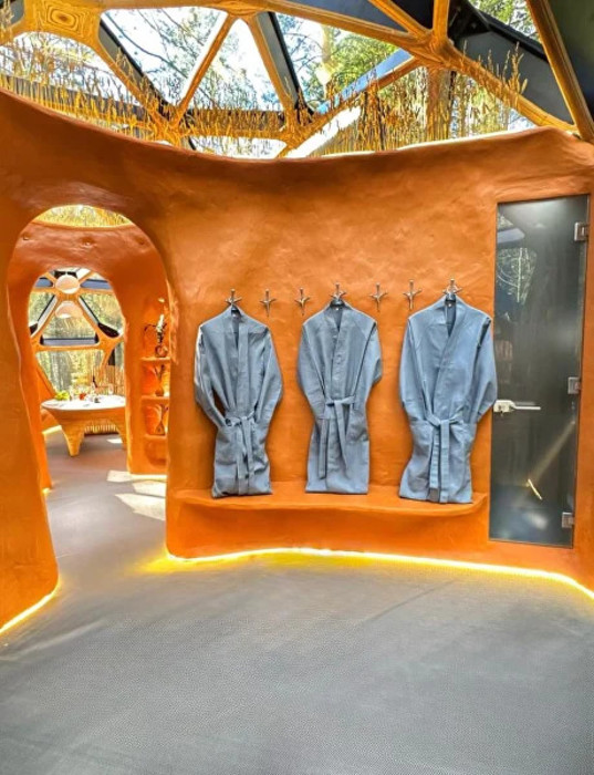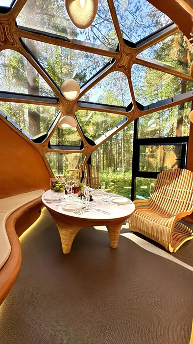 отдельностоящий купольный дом из стекла и дерева с террасой | 2 осн 2 доп |