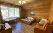 Проживание(варианты размещения) | благоустроенные номера - большинство номеров в коттеджах; частично благоустроенные номера - №1,2,3,4 в коттедже "Тайга"; неблагоустроенные номера - ЛК, ЛД |