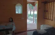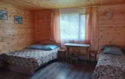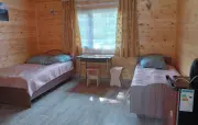 1 | 1,5-спальная и 1-спальная | телевизор (спутниковое телевидение), стол, стулья, зеркало, шкаф, тумбочка, полки, холодильник, чайник, обогреватель | туалет, умывальник (общий на 2 номера) – на 1 этаже коттеджа, душ (общий на 2 номера) - рядом с коттеджем | за счет 1,5-спальной |