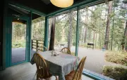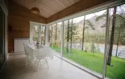застекленная панорамная веранда c обеденной зоной и видом на Катунь | спальная комната: 2-спальная кровать, тумбочки, телевизор, санузел (туалет, умывальник, душ, фен, халаты) гостиная: диван, шкаф, сейф, чайная зона (чайник, набор чайной посуды, чай, кофе), холодильник, телевизор |