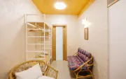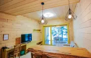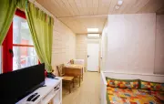 застекленная веранда, плетеная мебель | подогреваемые полы (во всех комнатах) спальная комната: 2-спальная кровать, комод или тумбочка гостиная: диван, гардеробная зона, кондиционер, стол, телевизор, холодильник, чайник, набор чайной посуды, чай, кофе, телефон санузел: туалет, умывальник, душ, фен |