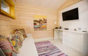 1-этажный коттедж на 4 номера | 2 осн | 1 | 2-спальная или две 1-спальные | подогреваемые полы, шкаф-гардероб, стол, стулья, тумба с полками, телевизор, чайник, набор чайной посуды, холодильник, кондиционер, телефон | туалет, умывальник, душ, фен | нет |