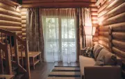 40 кв. м, 1 этаж, вид на лес, гостиная (диван, столик, комод, телевизор, мини-холодильник, чайник, набор чайной посуды), спальная комната (тумбочки) (номера могут отличаться друг от друга своей комплектацией)