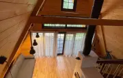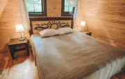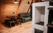 60 кв. м, 2-уровневый коттедж, оборудованная терраса, зона для барбекю, вид на лес гостиная (кирпичная печь, диван, шкаф, кухонная зона с мойкой, шкафчиками, газовой плитой, набором посуды, обеденный стол, стулья, телевизор, мини-холодильник, печь-СВЧ, чайник, набор чайной посуды), спальная комната (тумбочки) (номера могут отличаться друг от друга своей комплектацией)