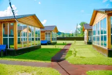 2 | 2-спальная, шесть 1-спальных | 48 м2, прикроватные тумбочки, вешалка, комод, журнальный столик, телевизор, выход на террасу | туалет, умывальник, душевая кабина, фен | раскладуш-ка | |