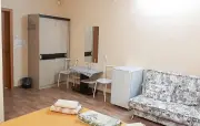 Хорошая гостиница. Много номеров. Общая столовая большая, что удобно самим приготовить еду. Плита, чайник, посуда, микроволновка, столы. Также возле гостиницы на территории есть беседки, мануальная зона, детская площадка, бассейн. В каждом номере душ, туалет, кровати, холодильник, телевизор, шкаф. Также можно воспользоваться вайфаем. В 10 минутах от гостиницы находится пляж 22 , и другие. Также магазины 10-15 минутах.